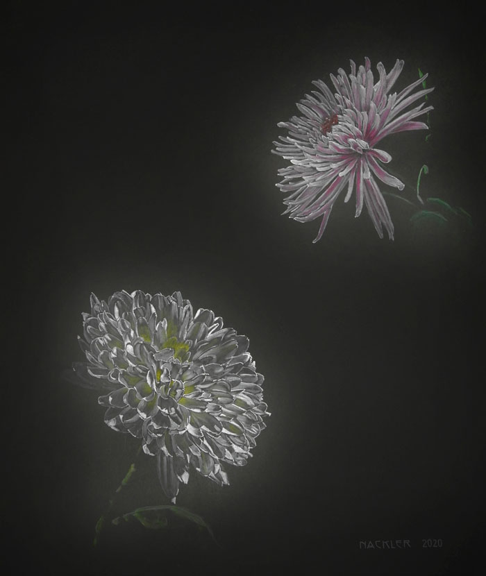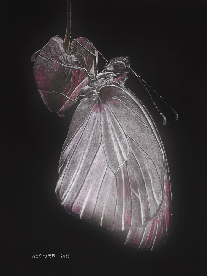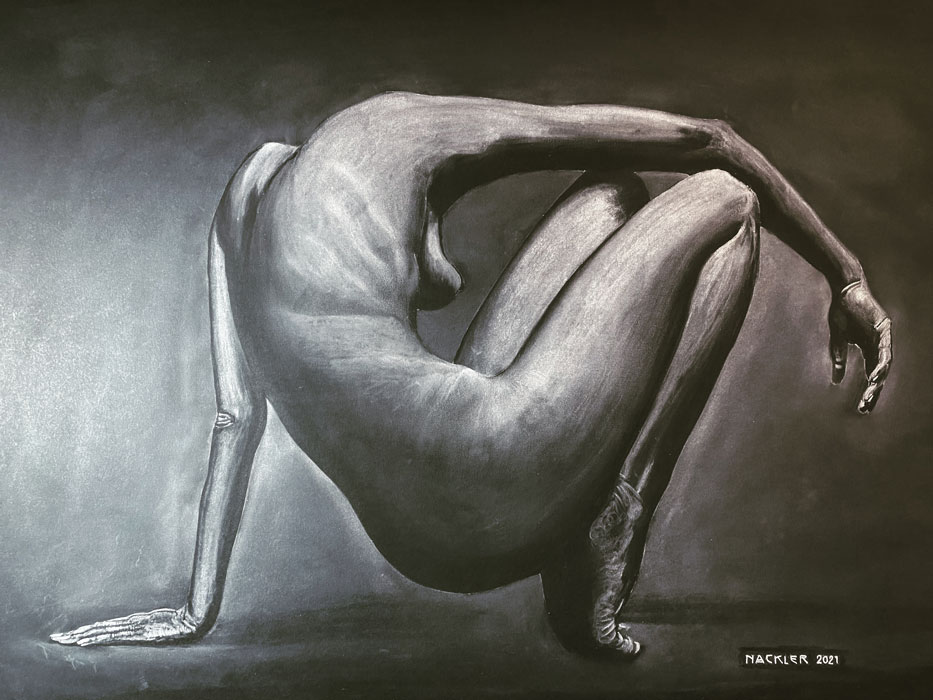 Karl Nackler, 1952 in Villach geboren, arbeitet mit Kreide und Pastell auf schwarzem Untergrund. Das Wesen seiner Arbeit liegt darin, dem Ungesehenen, oft Verborgenen, Ausdruck und Tiefe zu verleihen. Die Werke vereinen durchdachte Kompositionen mit pointierten Kontrastspielen, außergewöhnliche Detailpräzision und spürbarer Emotion.
