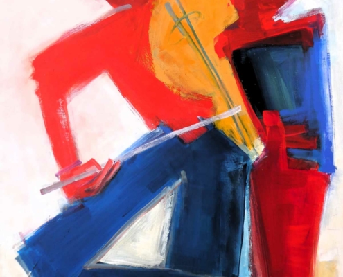 Seine künstlerische Welt manifestiert sich durch eine dynamische Symbiose von Formen und Farben, insbesondere Rot, Blau und Gelb, die er mit meisterhafter Präzision zu fast geometrischen Figuren verwebt. Seine abstrakte Darstellung von Figuren, Körpern und Gesichtern ist durch eine ausgeprägte Linearität charakterisiert, wobei die Konturen in kraftvollem Schwarz hervortreten. Als 3D-Beglieterin habe ich versucht, die essenziellen Elemente seiner Kunst in einem dreidimensionalen Medium zu verkörpern.